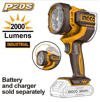 Dissipation de puissance LED : 22,5 W Lumens : 2000 ± 10 % Poignée ergonomique avec softgrip La tête de lampe LED peut pivoter à 130° degrés Emballé dans une boîte de couleur *Batterie et chargeur non inclus |