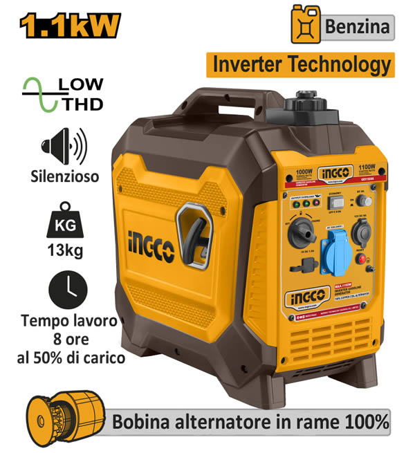 Générateur onduleur essence Ingco GEI15006 1,1 kW